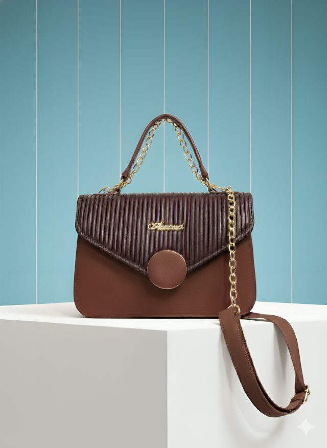 A stylish and versatile handbag crafted from premium PU leather. Its ribbed flap design, gold chain handle, and structured shape make it perfect for both daily use and special occasions.